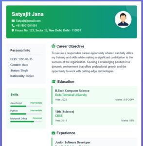 Our tool is perfect for freshers, professionals, freelancers, interns, and even those switching careers. Whether you’re in IT, sales, teaching, or marketing—our template suits all.