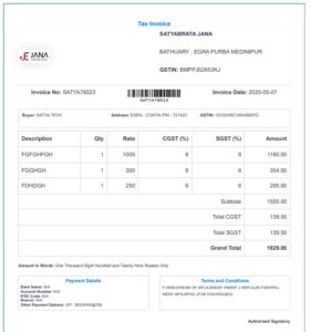 | Description | Qty | Rate | CGST (%) | SGST (%) | Amount |
